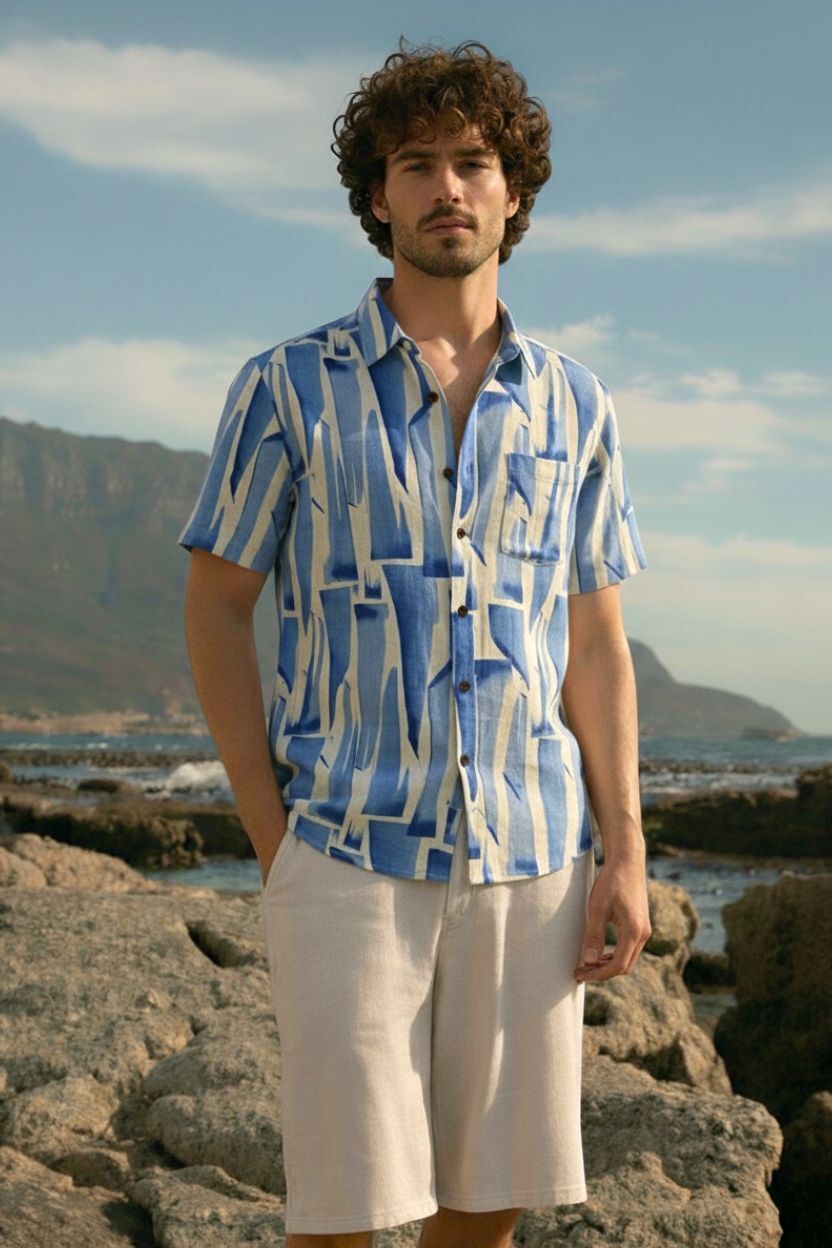 Abstract Print Blue Shirt for Men