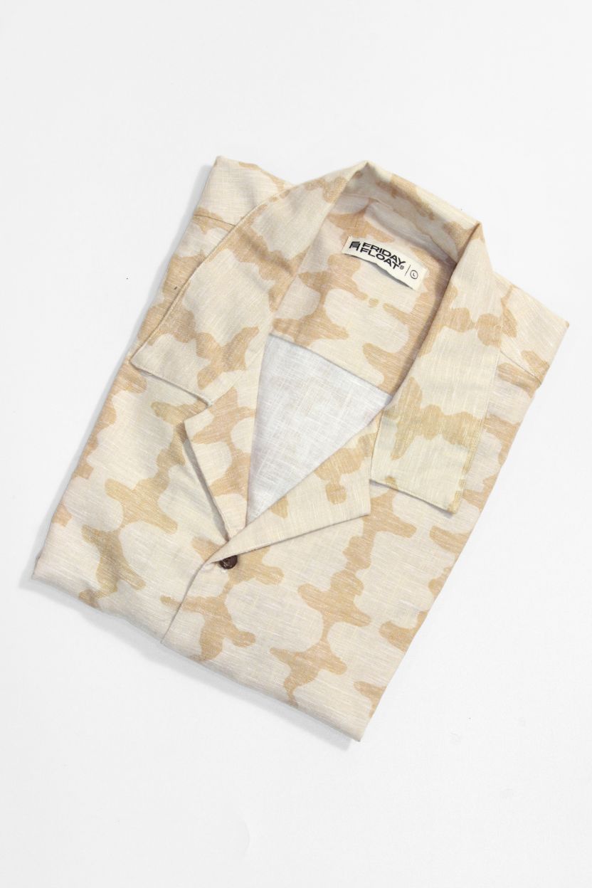 Beige Abstract Geometric Cuban Collar Shirt