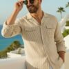 Beige Full Sleeve Khadi Stripe Cuban Shirt for Men