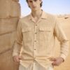 Understated and versatile, this beige textured check shirt is designed for effortless styling across seasons. The neutral tone pairs easily while the handcrafted fabric adds depth and character.