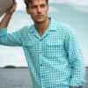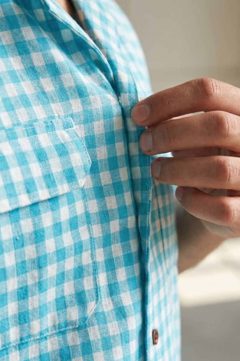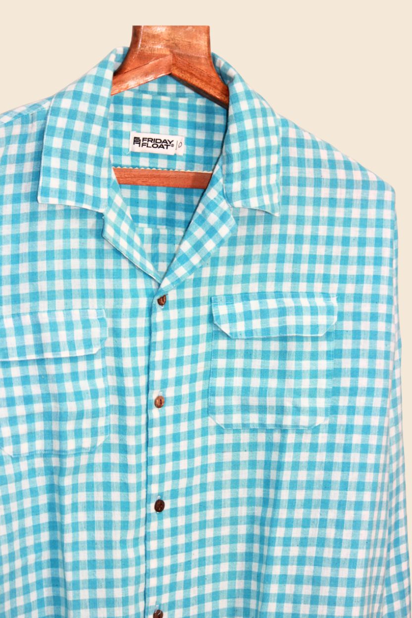 Blue Gingham Checkered Khadi Casual Cuban Shirt