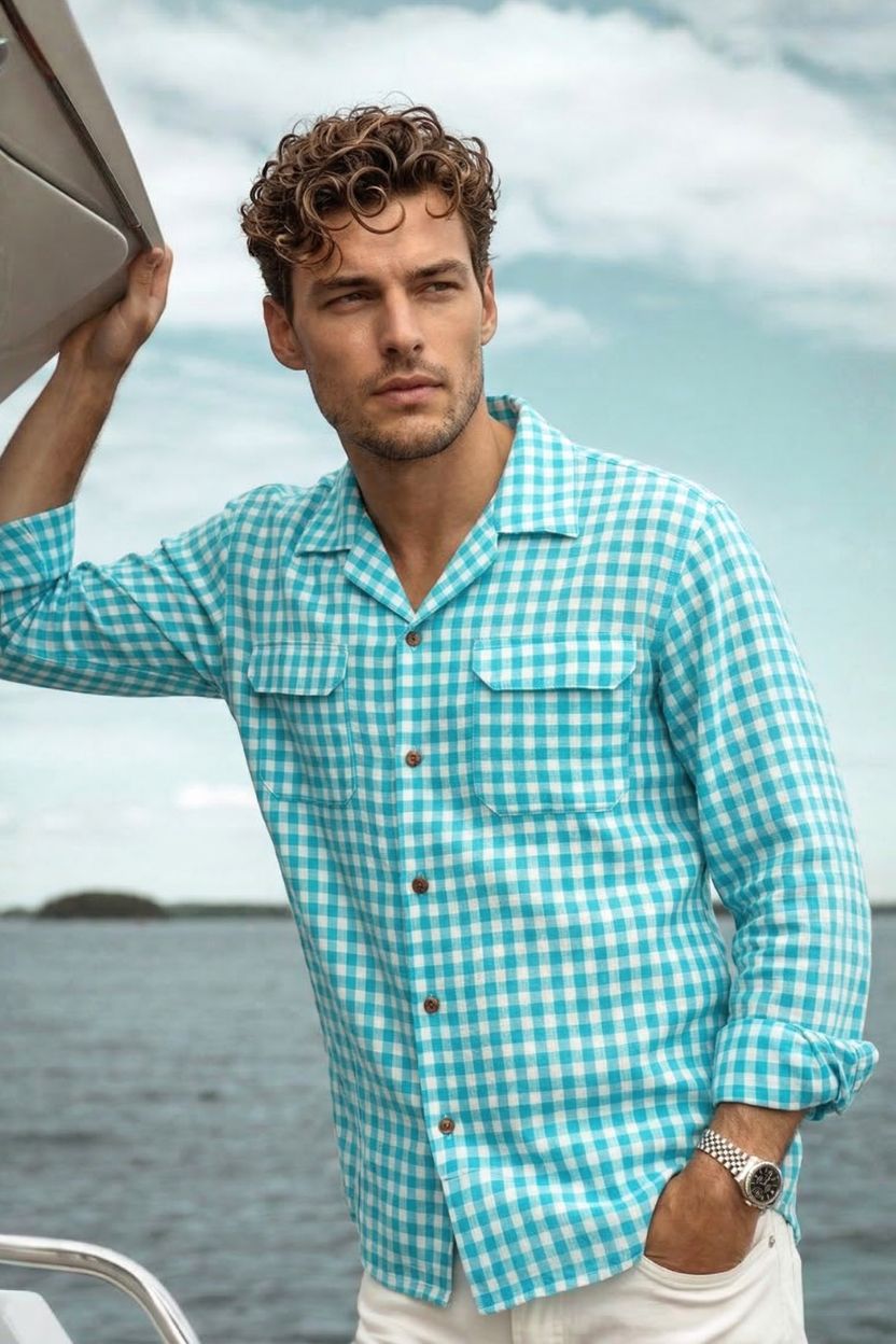 - Relaxed Cuban collar gingham checkered for an easy, laid-back silhouette