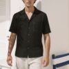 - Cuban collar and half sleeves with patch chest pocket in off-white stitching bringing a vacation-ready vibe
