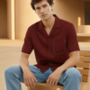 - Rich deep-maroon tone with patch chest pocket for a bold yet refined look