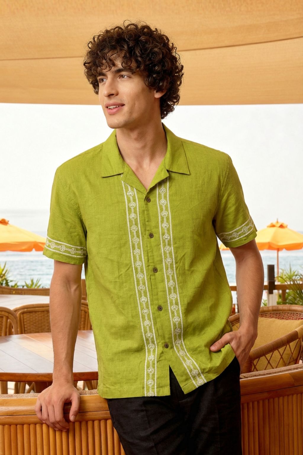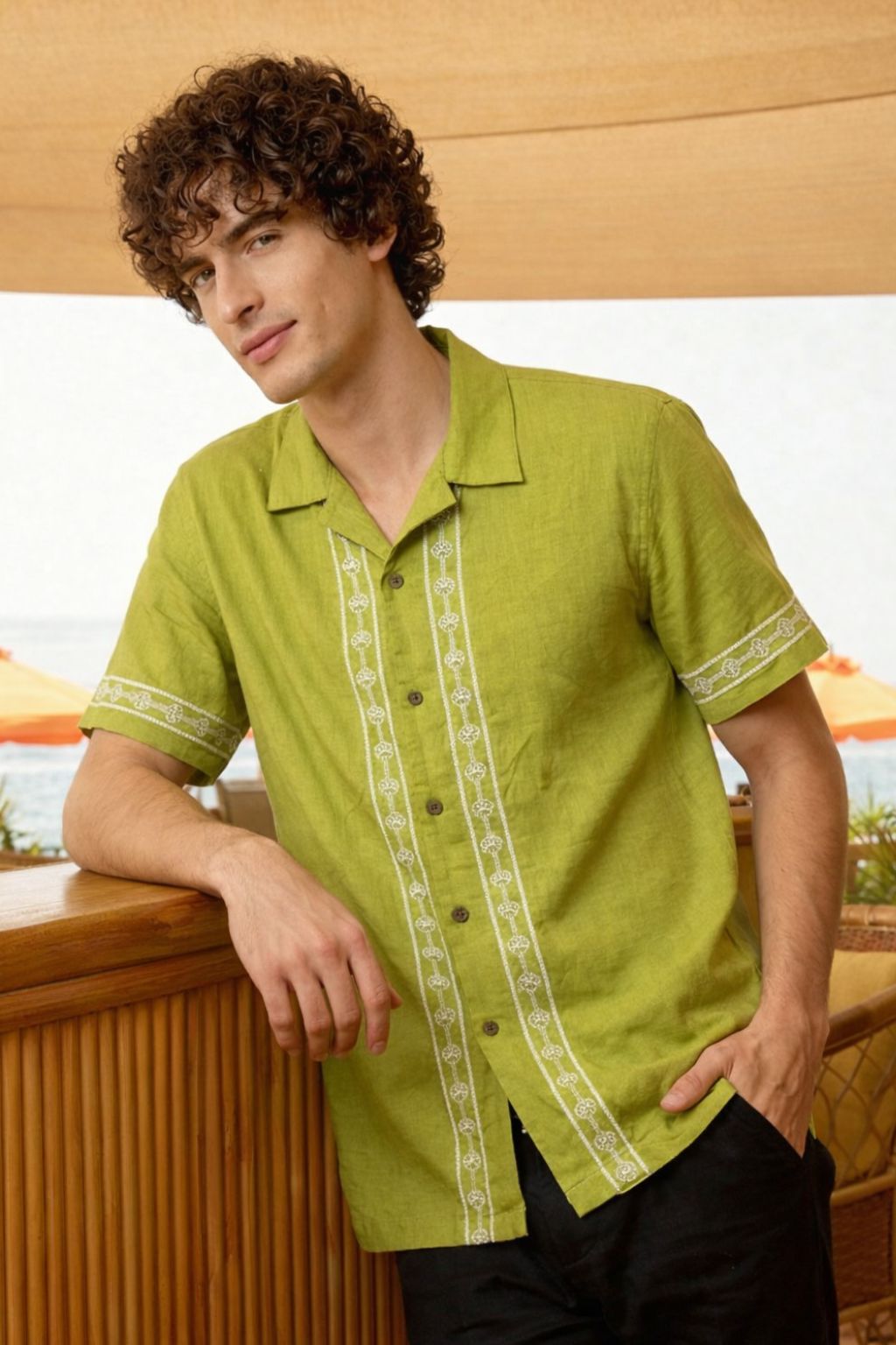 Embroidered Mint Green Cuban Shirt for Men