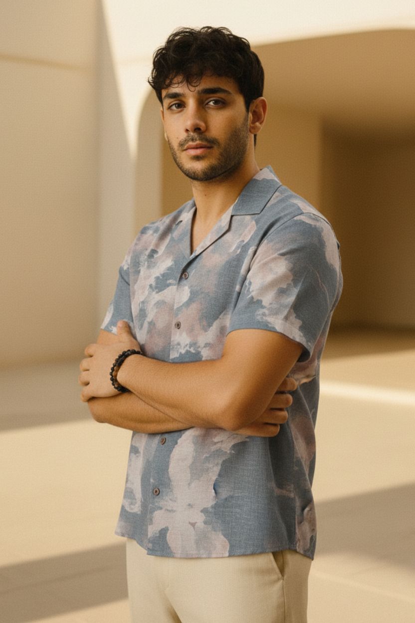 - Cuban collar and half sleeves for a laid-back, relaxed style
