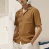 Half Sleeve Brown Relaxed Fit Cuban Collar Shirt