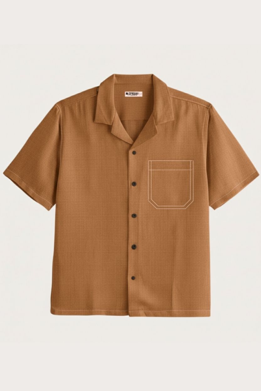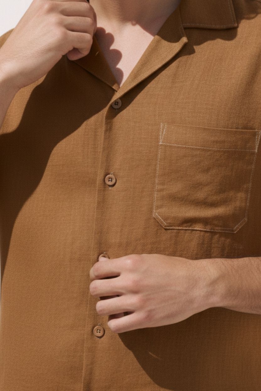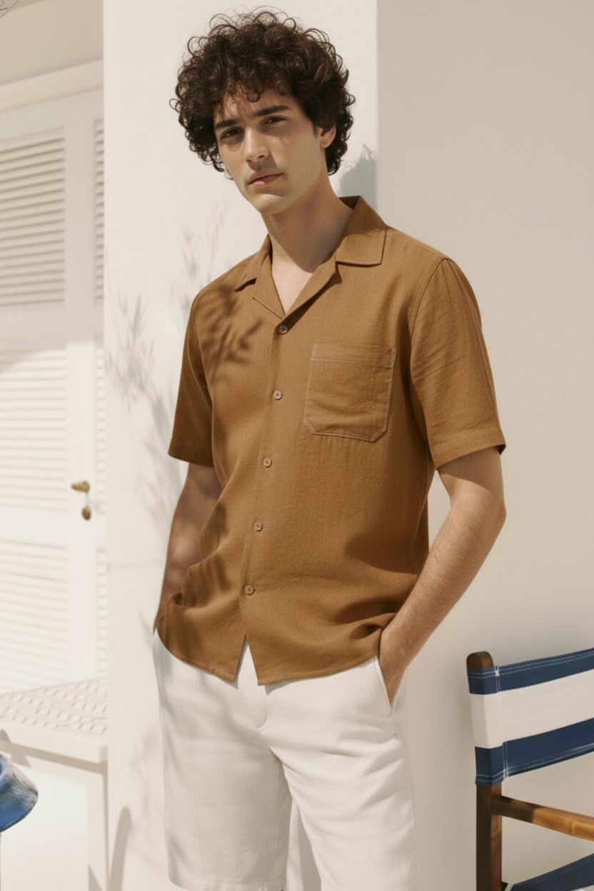 Half Sleeve Brown Relaxed Fit Cuban Collar Shirt