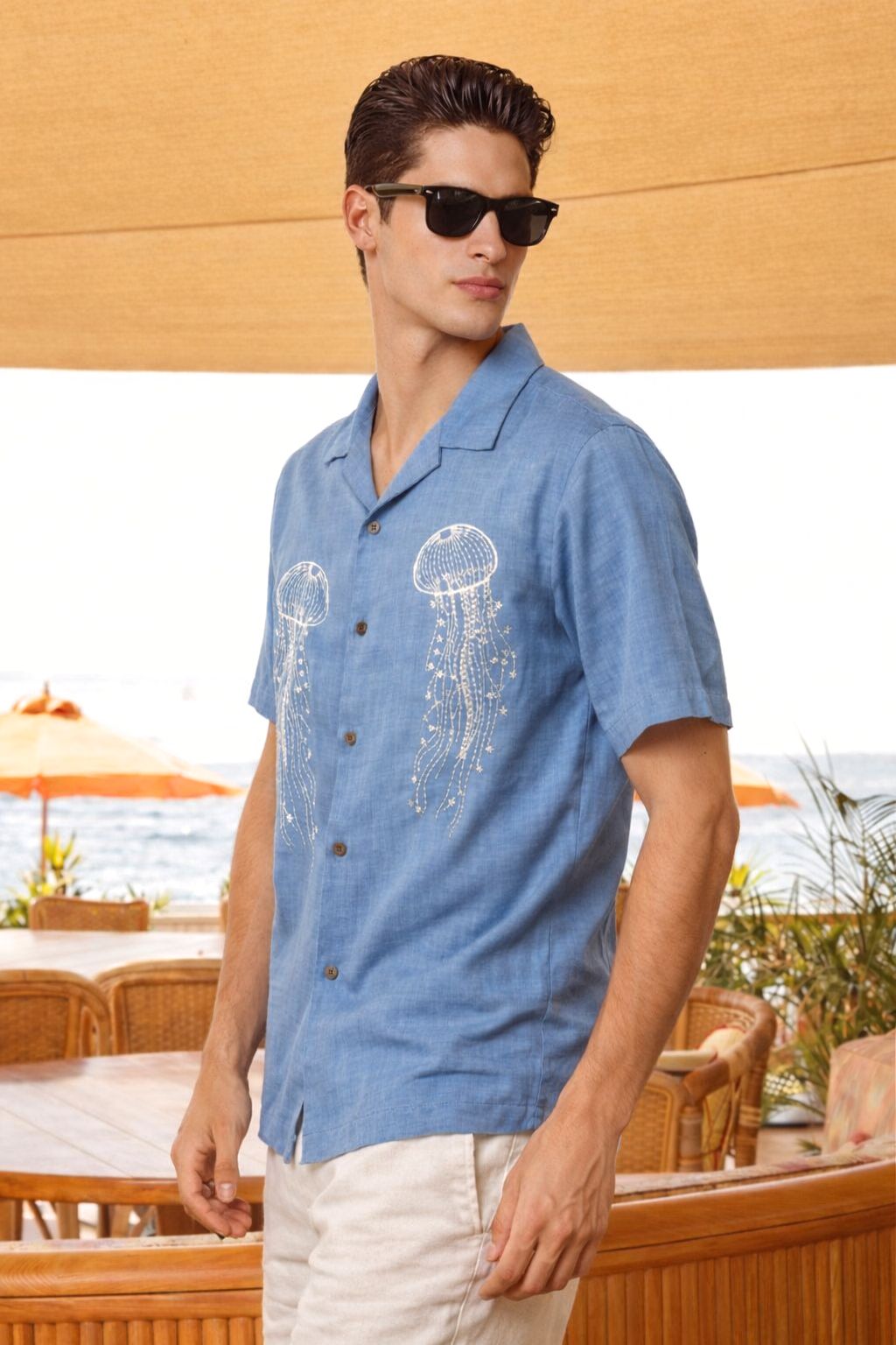 Jellyfish Embroidered Shirt for Men