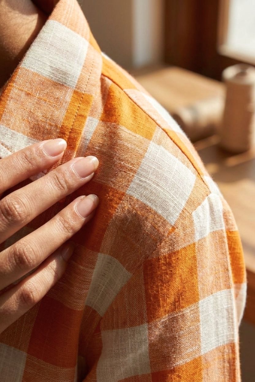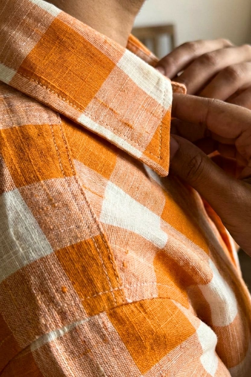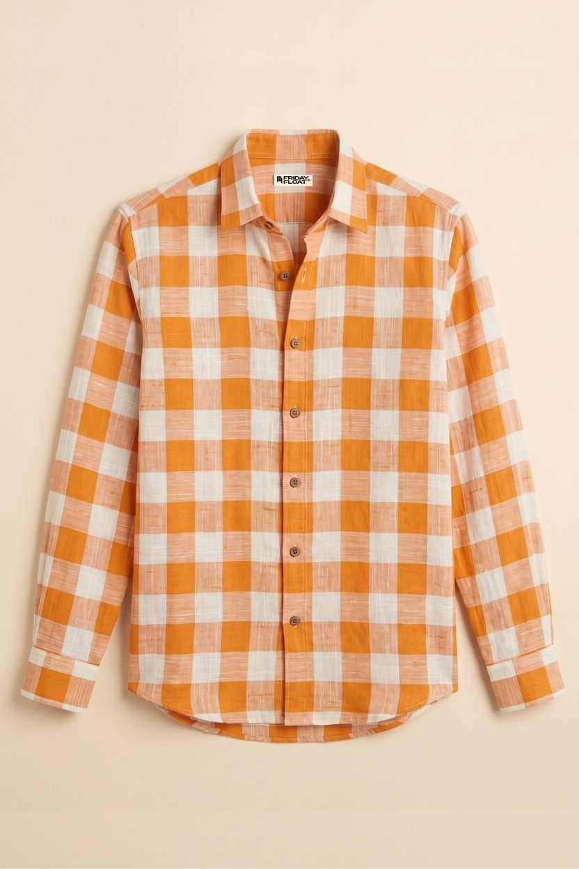 Men’s Orange Check Cotton Khadi Shirt