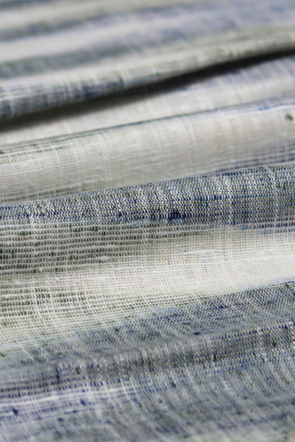 Pure Khadi Blue & Green Textured Cuban Shirt Full Sleeves for Men