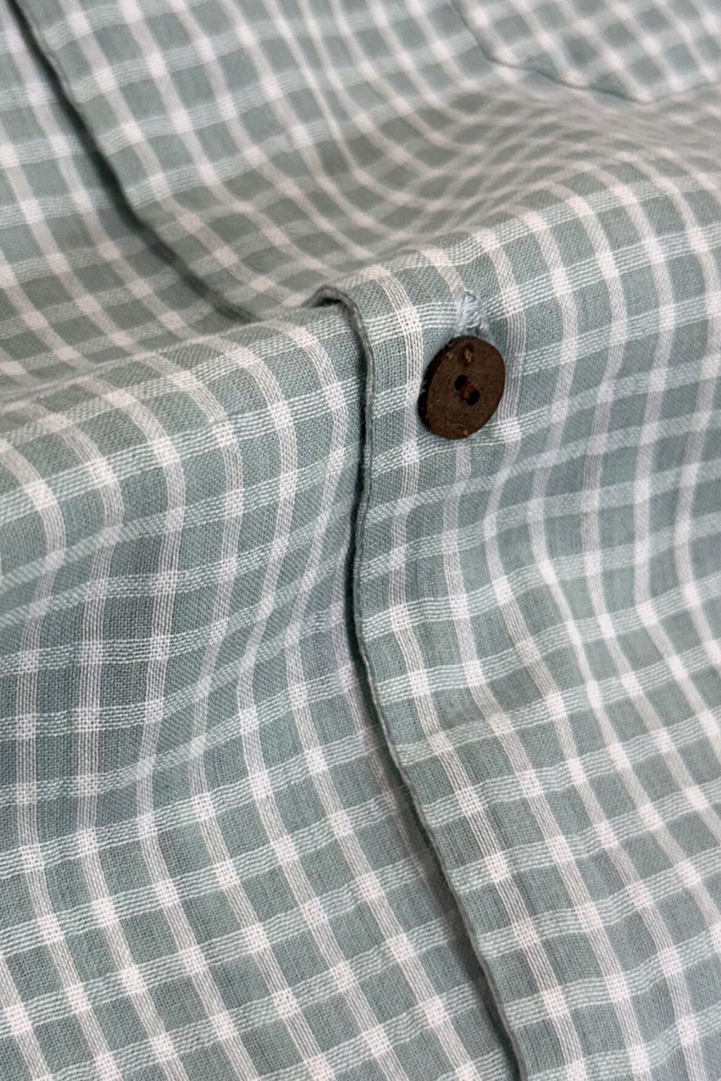 Minimal yet expressive, this sage green micro check shirt offers a calm, contemporary aesthetic rooted in traditional craftsmanship. Its soft colour and breathable fabric make it a versatile wardrobe staple.