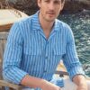 Stripe Blue Textured Khadi Cotton Cuban Shirt