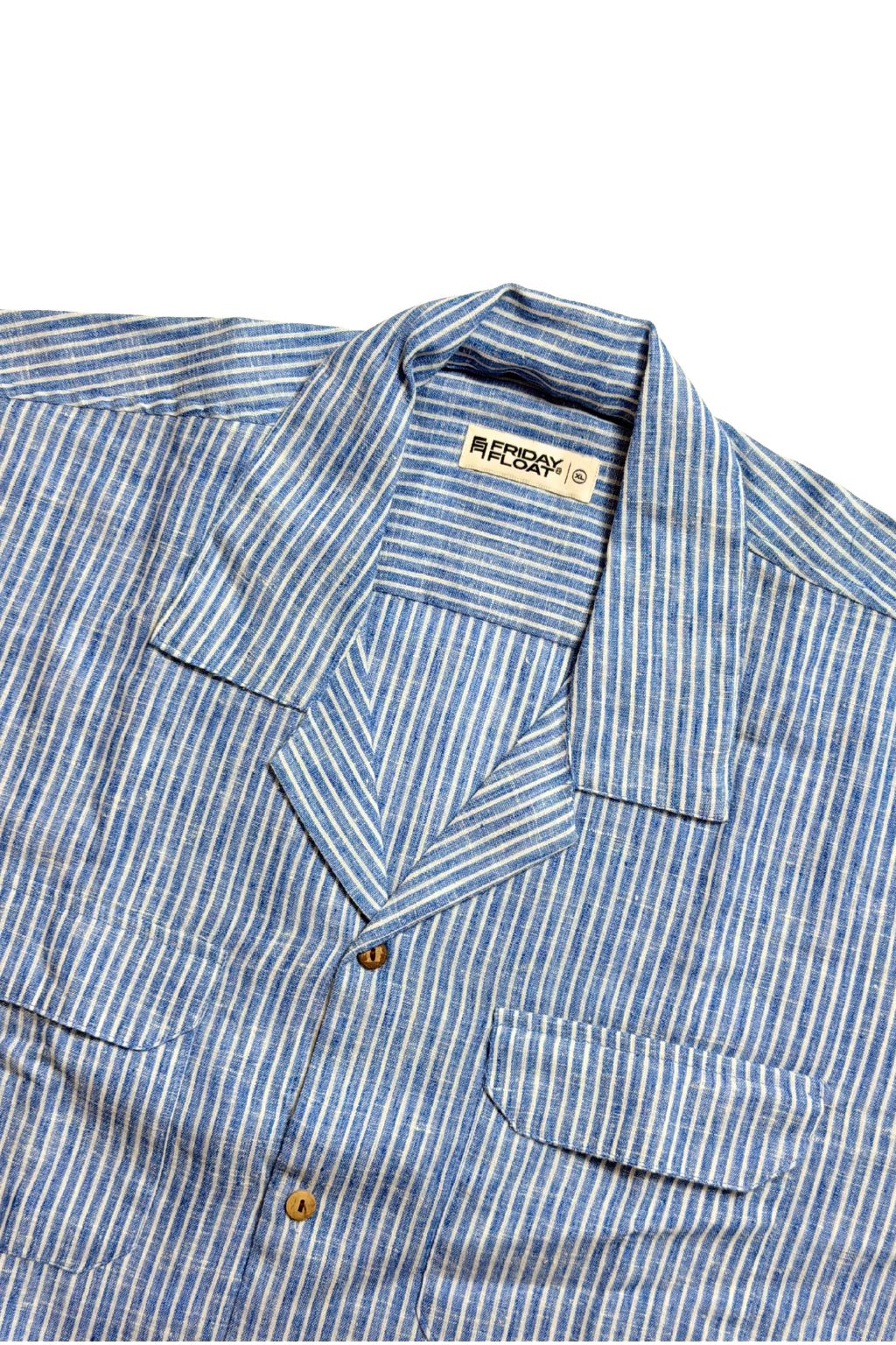 Stripe Blue & White Cuban Collar Shirt