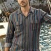Textured Foil Stripe Khadi Cuban Collar Shirt