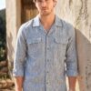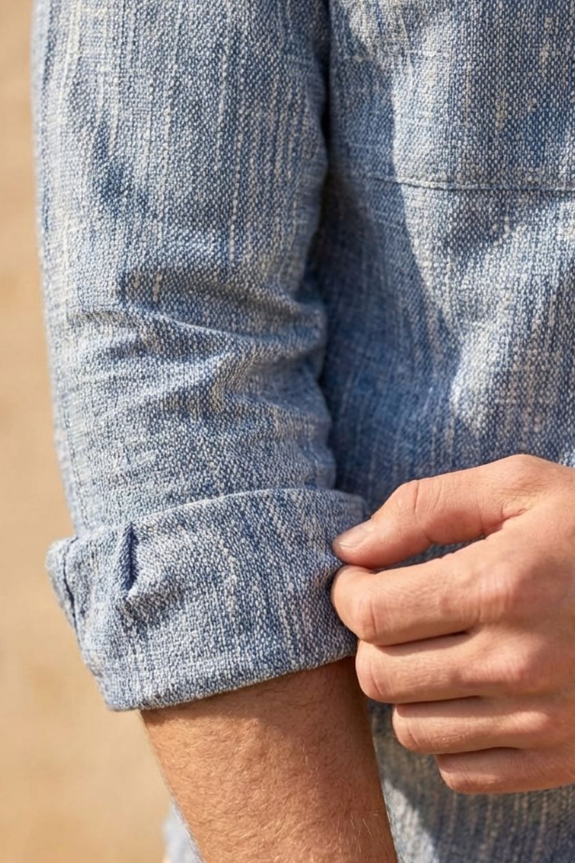 Drift into weekend mode with this classic azure light blue textured handloom shirt. Designed with a timeless Cuban collar, authentic wooden buttons, and twin flap chest pockets, this 100% cotton khadi shirt offers highly breathable comfort and effortless marine style for any casual occasion.