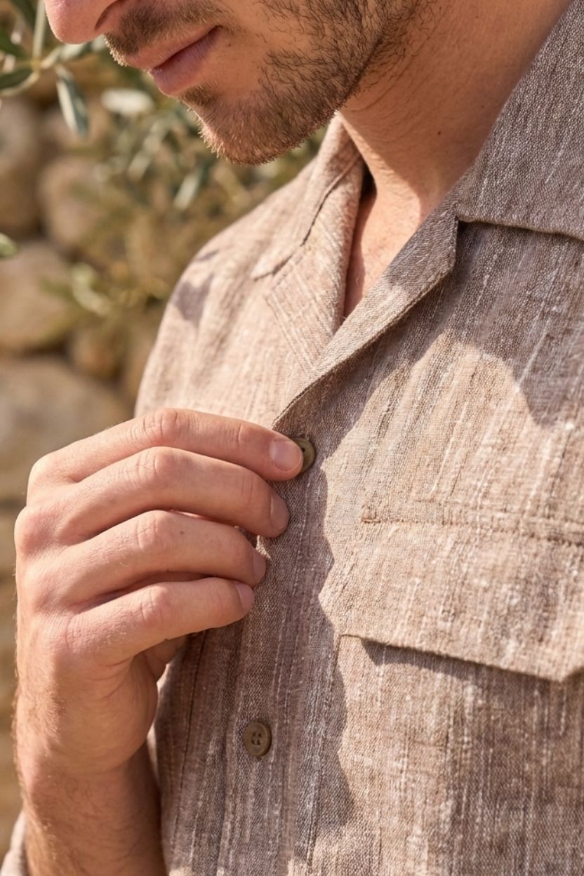 - Relaxed Cuban collar for a laid-back yet refined look