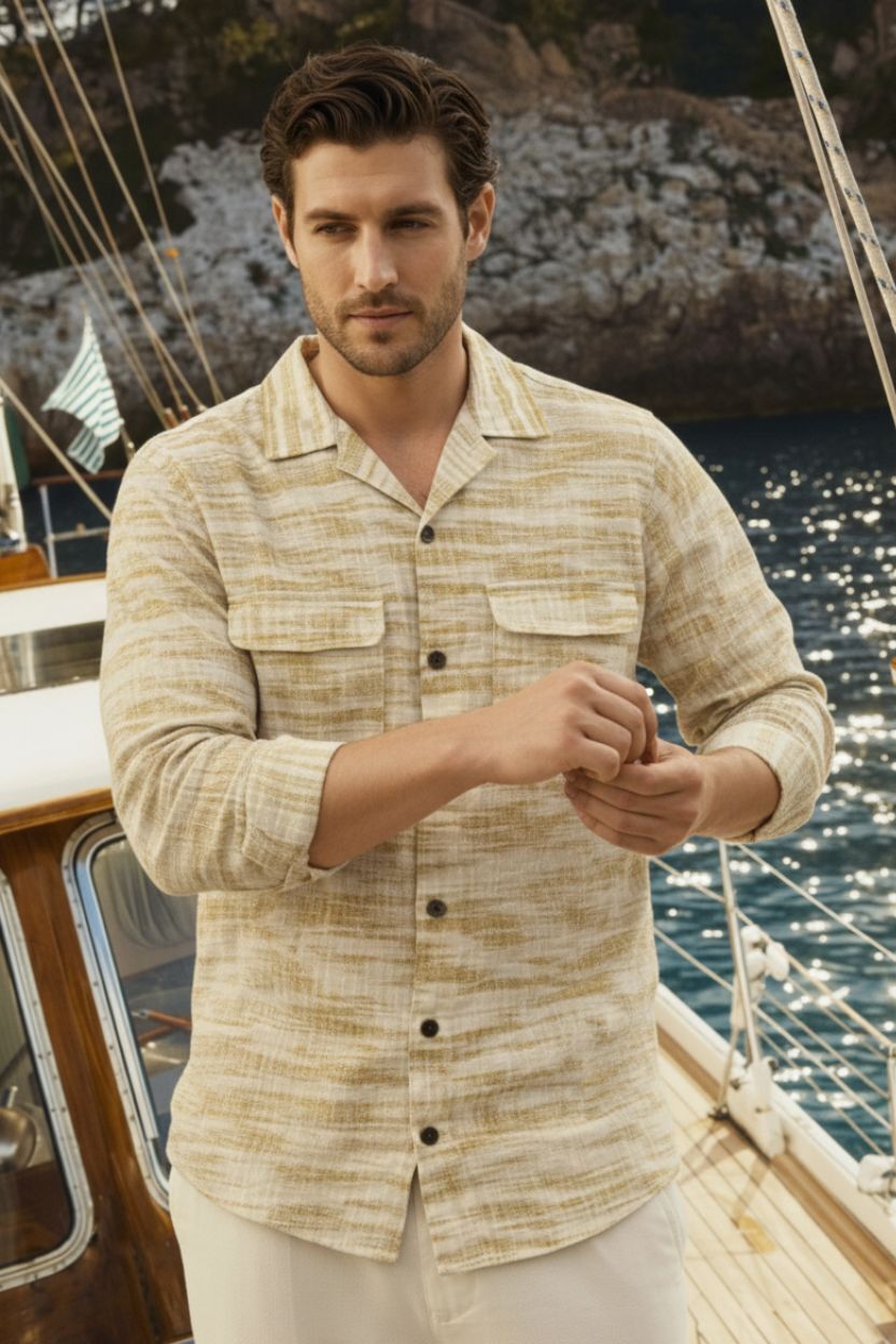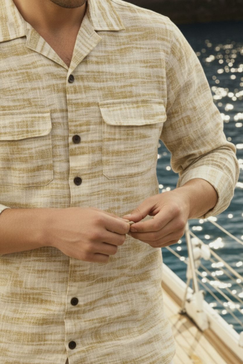 Warm Beige Sand Texture Cuban Full Sleeve Shirt